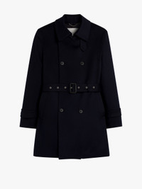 Description The Fetlar coat spotlights Mackintosh's storied outwear expertise: it's crafted from Loro Piana Rain System® wool that's both water-repellent and lightweight. A minimalist, streamlined take on the quintessential trench, it's tailored to a shorter silhouette without epaulettes and storm flaps. Size & Fit Model is 187cm and wears size 38/M Details & Care Fetlar Navy Rain System Wool Short Trench Coat Navy blue Water-repellent Point collar Detachable throat latch with button fastening Long sleeves with buckle adjusters at cuffs Detachable waist belt with buckle fastening Slip side pockets Single vent Internal hanging chain loop Double-breasted button fastening Regular fit 100% wool; lining: 100% cupro Fabric weight: 247g / m² Dry clean only Made in the United Kingdom Style ID: MO8950 Model: FETLAR GM-1166F/WO AAU01