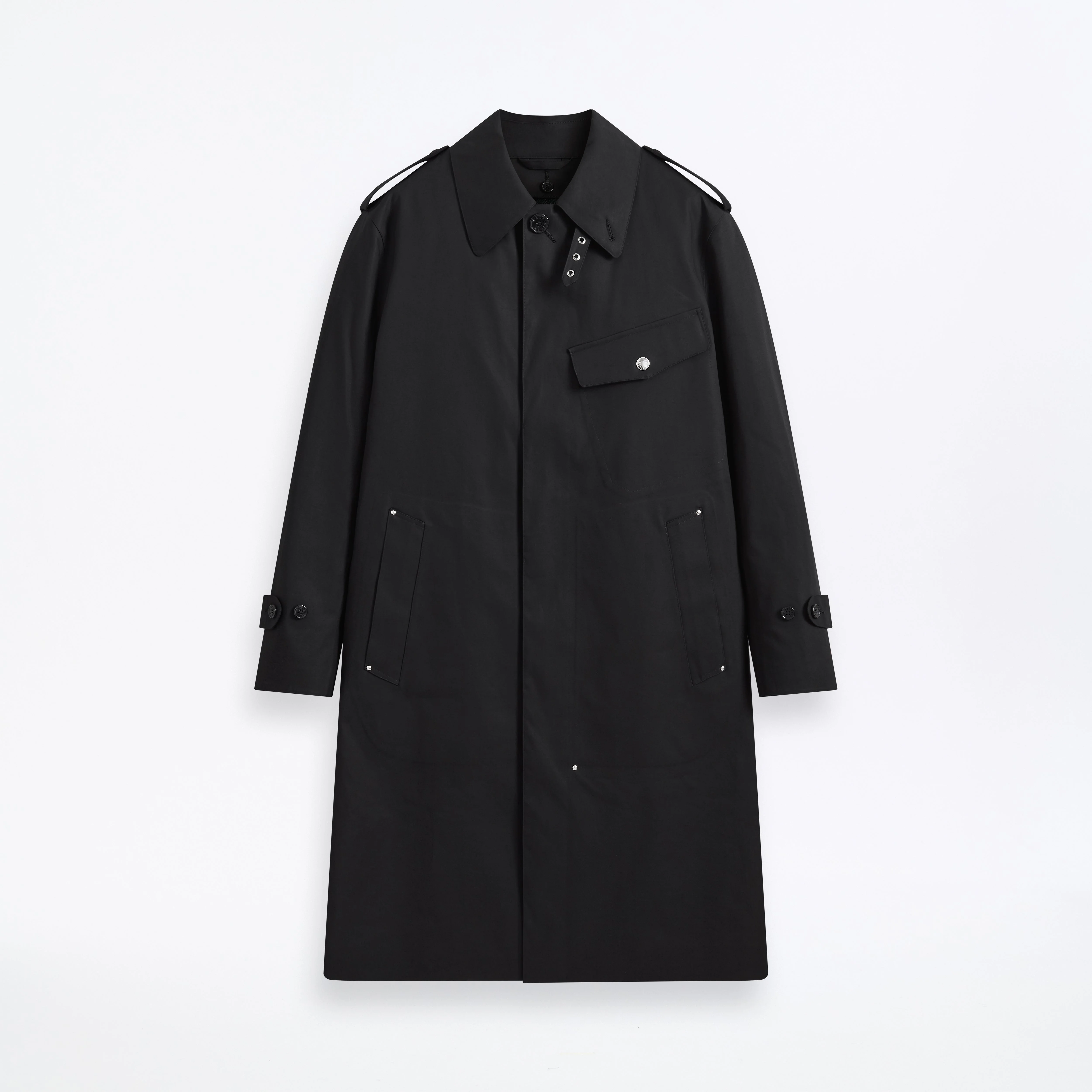 A single-breasted coat designed with the inspiration of the military coat worn by the British Army's dispatch riders (special information motorcycle unit) during World War II, which is an archive item of Mackintosh. Equipped with a 100% wool detachable liner with a black watch pattern, it has excellent cold protection. Fabric: Raintec® Attributes: Waterproof. Breathable. Windproof Detailing: Epaulettes. Cuff tabs. Chest pocket. Removable neck latch. Detachable wool liner Item code: OC1143 SIZE & FIT Fit: Regular FABRIC & CARE Composition: 100% Cotton Washing: Gentle wet clean. Do not dry clean. Do not machine wash.