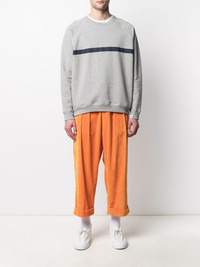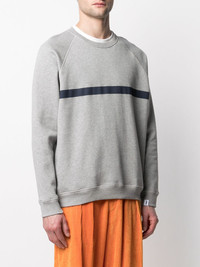 horizontal-stripe crew-neck sweatshirt Minimalists, rejoice. This raglan-sleeve Mackintosh sweatshirt is made for your wardrobe. A horizontal stripe steals the show here. Highlights - Grey/navy - Organic cotton - Crew neck - Long raglan sleeves - Horizontal stripe pattern - Logo patch at the sleeve Imported Composition Organic Cotton 100% SIZE & FIT Model measurements Height 6 ft 2 in(1.87 m) Bust/Chest 37.79 in(96 cm) Hips 37.79 in(96 cm) Waist 30.31 in(77 cm) FittingInformation This piece fits true to size. We recommend you get your regular size Cut for a loose fit Made with a mid-weight fabric Washing instructions Hand Wash