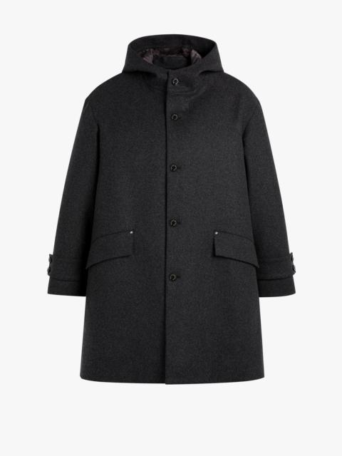 HUMBIE HOOD NAVY WOOL OVERCOAT