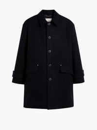 Description Drawing from the Mackintosh archives and heritage outerwear design, the Humbie coat is crafted from wool to a wide, A-line silhouette. Immaculately constructed in the United Kingdom with signature functional elements, it's fitted with a detachable throat latch, cuff adjusters and an internal chain-link loop. Size & Fit Model is 187cm and wears size 38/M Details & Care Humbie Navy Wool Overcoat Navy blue Point collar Detachable throat latch with button fastening Drop shoulders Long sleeves with button adjusters at cuffs Flap side pockets Internal hanging chain loop Button front fastening Regular fit 100% wool; lining: 100% cupro Fabric weight: 630g m (150cm) Dry clean only Made in the United Kingdom Style ID: MO9030 Model: HUMBIE GTS SL GM-1160F/WO 2K02