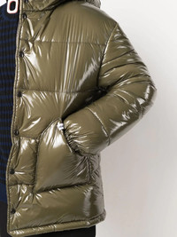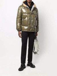 OSAKA puffer jacket Mackintosh's OSAKA jacket showcases the brand's expert craftsmanship. Designed with padded panels, this piece features a waterproof shell in a shiny finish. Made in United Kingdom Composition Outer: Nylon 95%, Polyurethane 5% Lining: Nylon 100% SIZE & FIT Model measurements Height 6 ft 2 in(1.89 m) Bust/Chest 35.43 in(90 cm) Hips 36.61 in(93 cm) Waist 28.74 in(73 cm) Measurement CHEST 44.88 in(114 cm) LENGTH 28.54 in(72.5 cm) Shoulder Width 20.86 in(53 cm) SLEEVE LENGTH 24.21 in(61.5 cm) WAIST 51.18 in(130 cm) FittingInformation This piece fits true to size. We recommend you get your regular size Cut for a loose fit Made with a mid-weight fabric Washing instructions Dry Clean Only