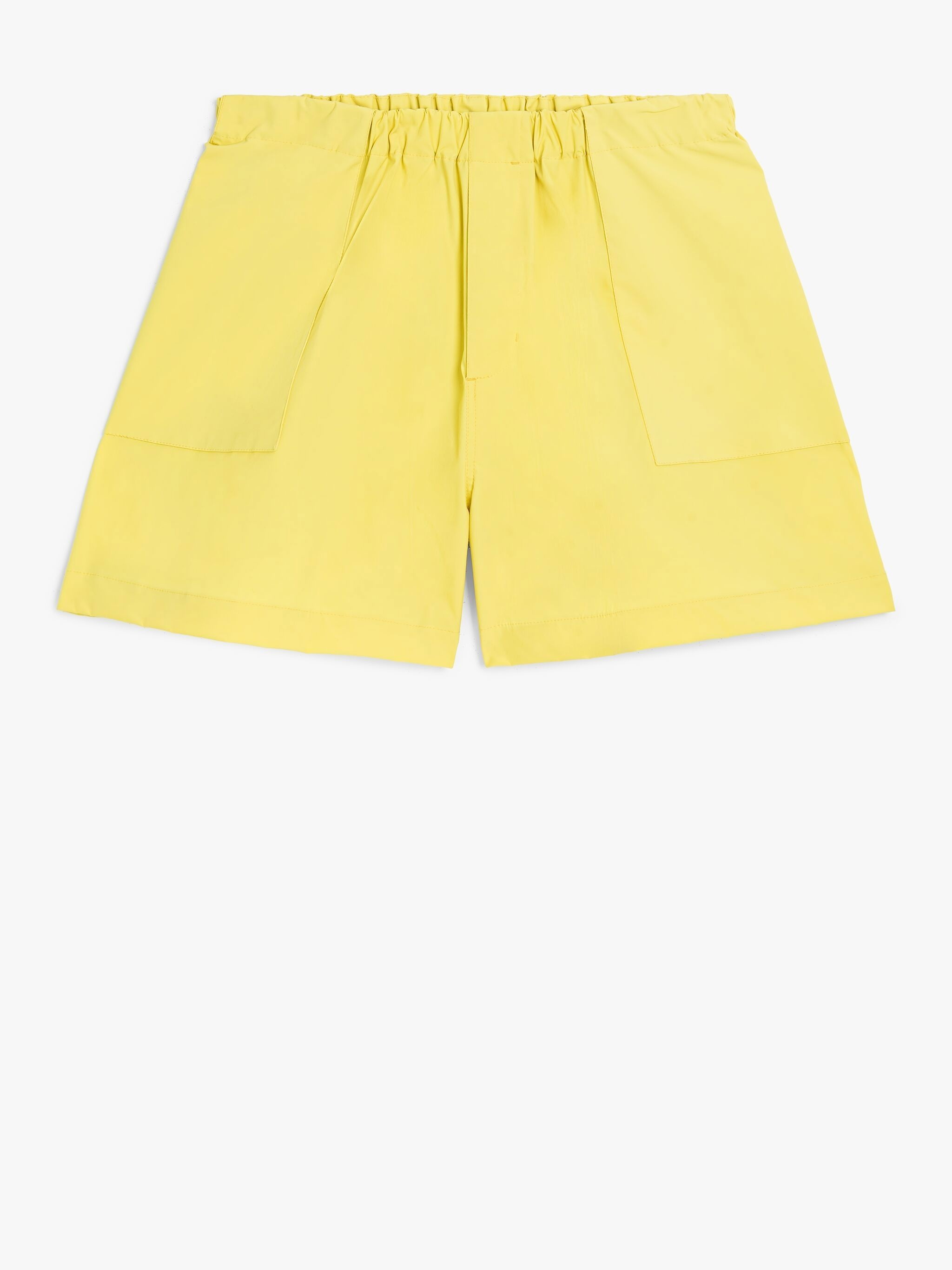 Description These yellow Plain Captain shorts are crafted in Italy from lightweight, durable ECO DRY that's also water-repellent. They're cut to a relaxed fit with an elasticated waist and multiple patch pockets. Size & Fit Model is 185cm and wears size M Consult our size guide for further information Details & Care Plain Captain Yellow ECO DRY Shorts Bright yellow Elasticated waistband Patch front pockets Patch back pockets with white logo tab Wide leg 60% recycled polyethylene, 40% polyethylene Dry clean only Made in Italy Style ID: TO0170 Model: PLAIN CAPTAIN SHORTS GTM-223 AGN13