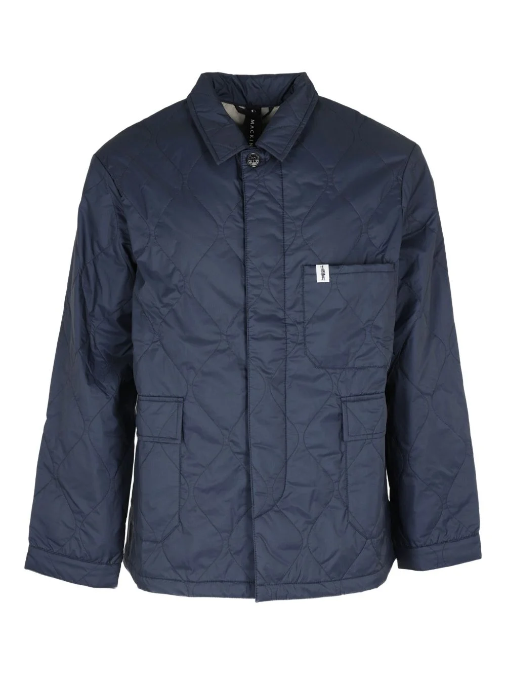 quilted jacket Highlights - Navy blue - Concealed front fastening - Three front patch pockets - Long sleeves - Mini logo tag Imported Composition Nylon 100% Washing instructions Dry Clean Only