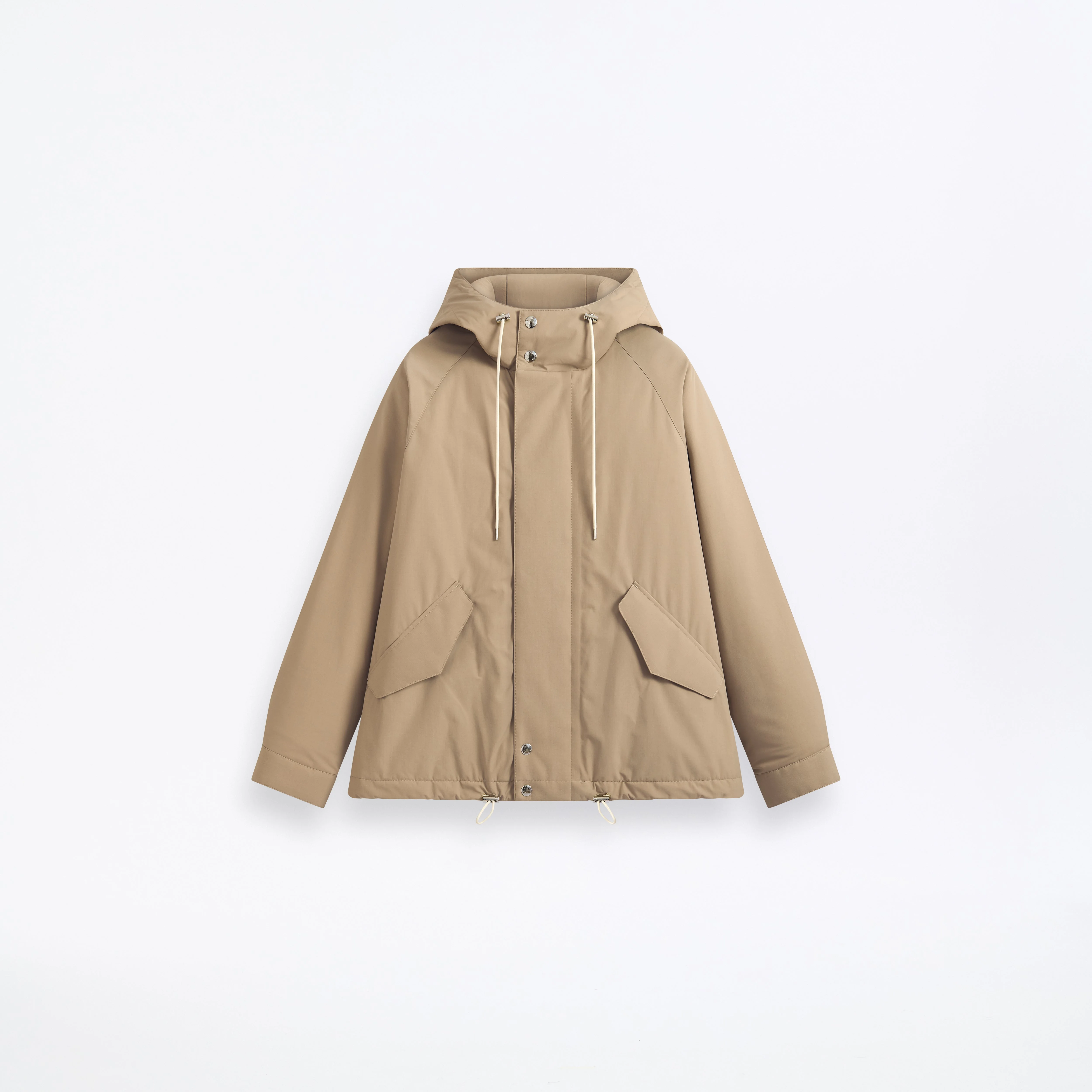 The Raintec Skye Thindown Short Parka is a modern update of the military parka. This down jacket combines both functionality and design, featuring a breathable and waterproof outer fabric along with highly insulating Thindown fill. Thindown is a natural, light, warm, breathable, and environmentally friendly down material used as insulation. Made in: Japan Fabric: 100% recycled nylon Attributes: Waterproof. Breathable. Insulated. Windproof Detailing: Hood. Storm flap. Cord adjusters. Flap pockets Item code: OC1366 SIZE & FIT Fit: Regular FABRIC & CARE Composition: 100% Recycled Nylon Washing: Dry clean only