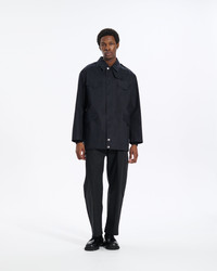 A modern update of the US Army M-51 jacket. The cuffs have been removed and the waist pockets have been replaced with patch pockets with hand warmers. Equipped with a detachable Harris Tweed liner, it has excellent cold protection. Made in: Handmade in Scotland Fabric: Rubberised bonded cotton Attributes: Waterproof. Windproof. Taped seams Detailing: Neck latch. Placket. Epaulettes Item code: RO6698 SIZE & FIT Fit: Regular Model: Timmy is wearing a UK size 40. Height: 189cm. Chest: 89cm. Waist: 71cm FABRIC & CARE Composition: 100% Cotton Bonded Washing: Spot clean only. Do not machine wash. Do not dry clean. Day to day: Small marks can be removed with soap and water. Apply soap with a soft brush only. Never use spirit or any other chemical cleaners.