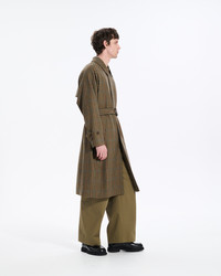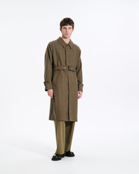 The Roxburgh belted coat is inspired by archived equestrian riding coats. This piece features the beautiful single-sleeve raglan sleeves and elegantly flowing below-the-knee length of an authentic design, all finished in a modern silhouette that offers a relaxed, sophisticated feel. Made in: Japan Attributes: Water repellent. Dust repellent. Stain Resistent Detailing: Waist belt. Box pockets. Button down collar Item code: OC1340 SIZE & FIT Model: Theo is wearing a UK size 40. Height: 188cm. Weight: 76kg. Chest: 95cm. Waist: 76cm. Hips: 81cm FABRIC & CARE Composition: 93% WOOL, 7% CASHMERE