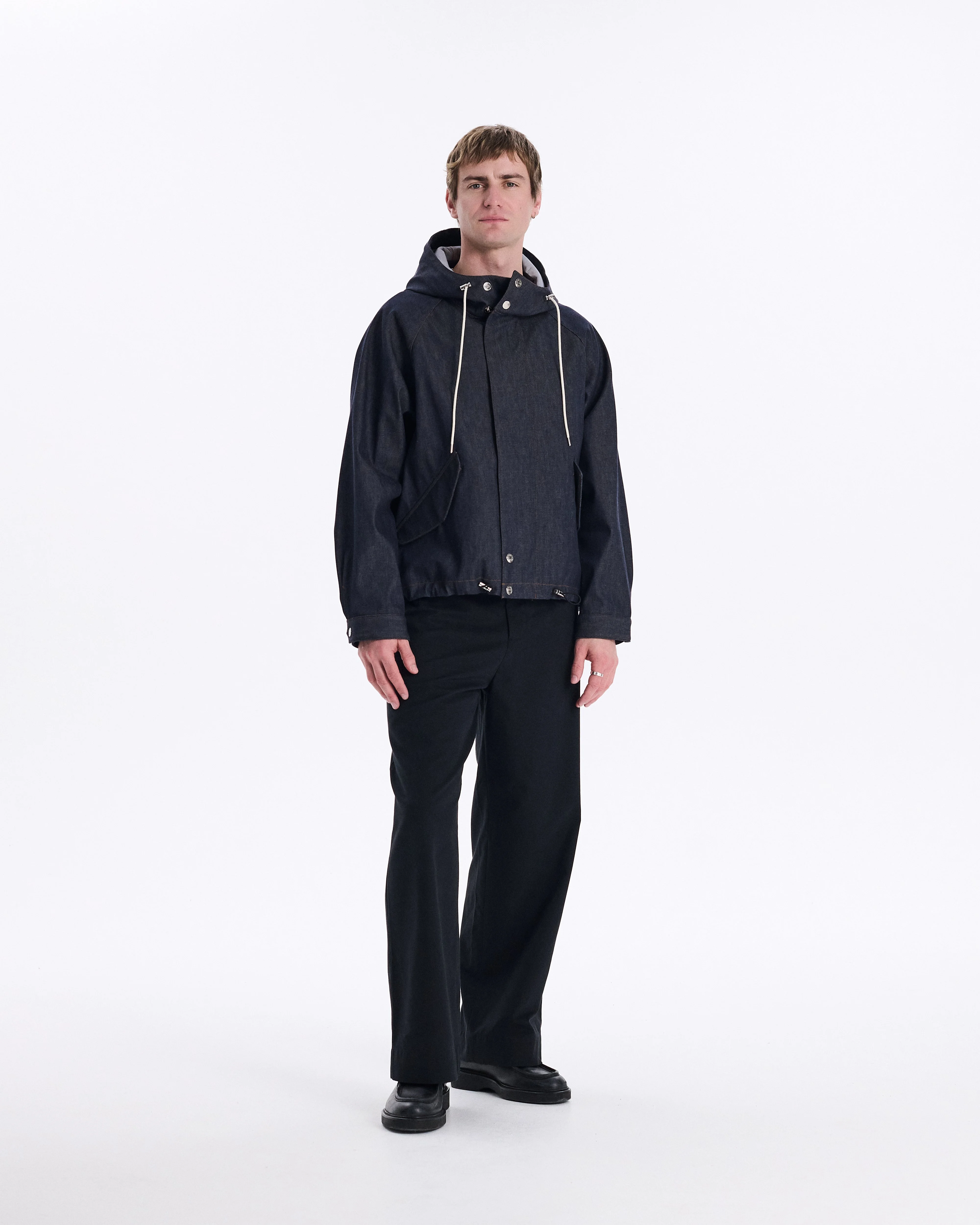 A simple and modern military parka that reimagines the US Army M-51 with shorter length, raglan sleeves and streamlined details throughout. To achieve a denim-inspired aesthetic, it features No. 20 golden-brown topstitching as a key design accent. Made in: Japan Attributes: Hood. Waterproof. Breathable Item code: OC2018 SIZE & FIT Fit: Regular Model: Ben is wearing a UK size 40. Height: 188cm. Chest: 95cm. Waist: 79cm. Hips: 100cm FABRIC & CARE Composition: 100% Cotton