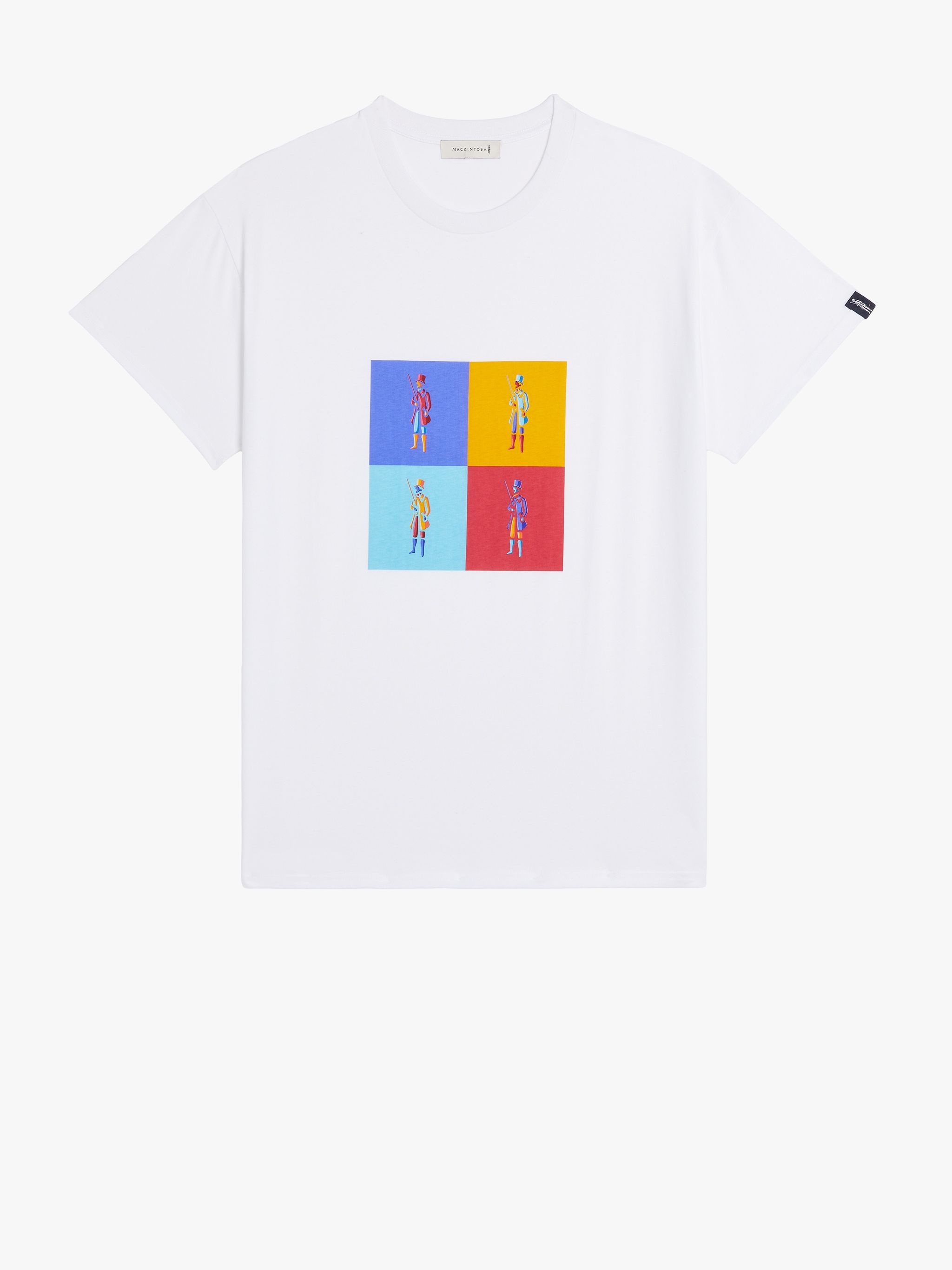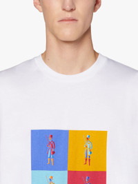 Description Four colourful printed iterations of the Dandy Man logo lend a playful, Pop Art-inspired twist to this simple white T-shirt. It’s cut to a relaxed fit with a classic crew neck and short sleeves with a signature logo tab at one cuff. Size & Fit Model wears size M Model measures: chest 35.5”/90cm, height 74”/188cm, waist 29”/75cm, hips 37”/93cm Details & Care Crew neck Short sleeves with logo tab 100% organic cotton Machine wash Style ID: CA0390 Model: MONOGRAM DANDY TEE GJM-221 WHITE