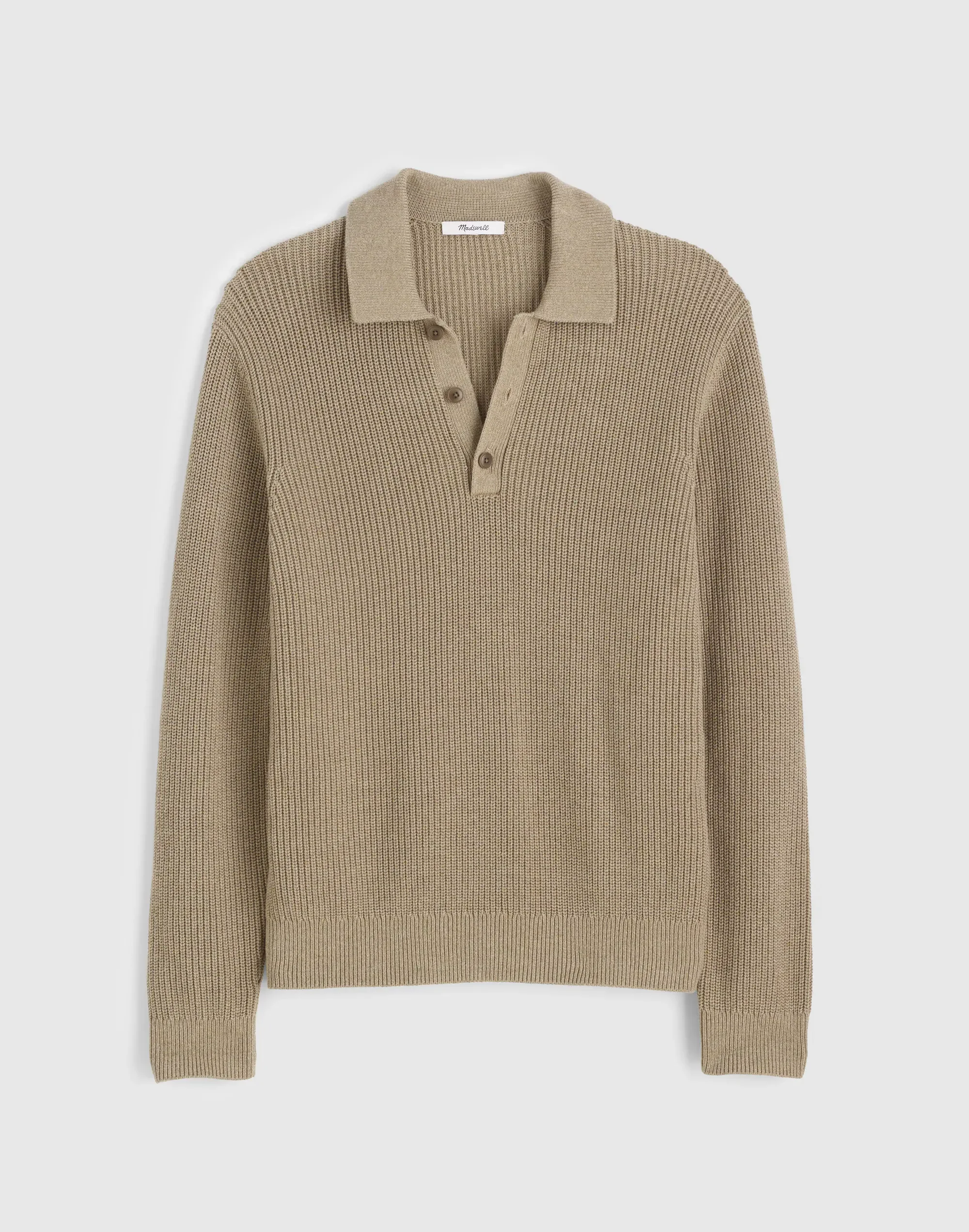 Made from 100% cotton, this polo features a shaker stitch, which creates unique highs and lows throughout. Wear yours with our signature denim for a classic, everyday look. - Regular fit. - Body length: 25 3/4". - 100% cotton. - Do Well: for each item made at the Fair Trade Certified™ factory, we contribute to a Community Development Fund managed by the workers. - Machine wash. - Imported. - Item NW440