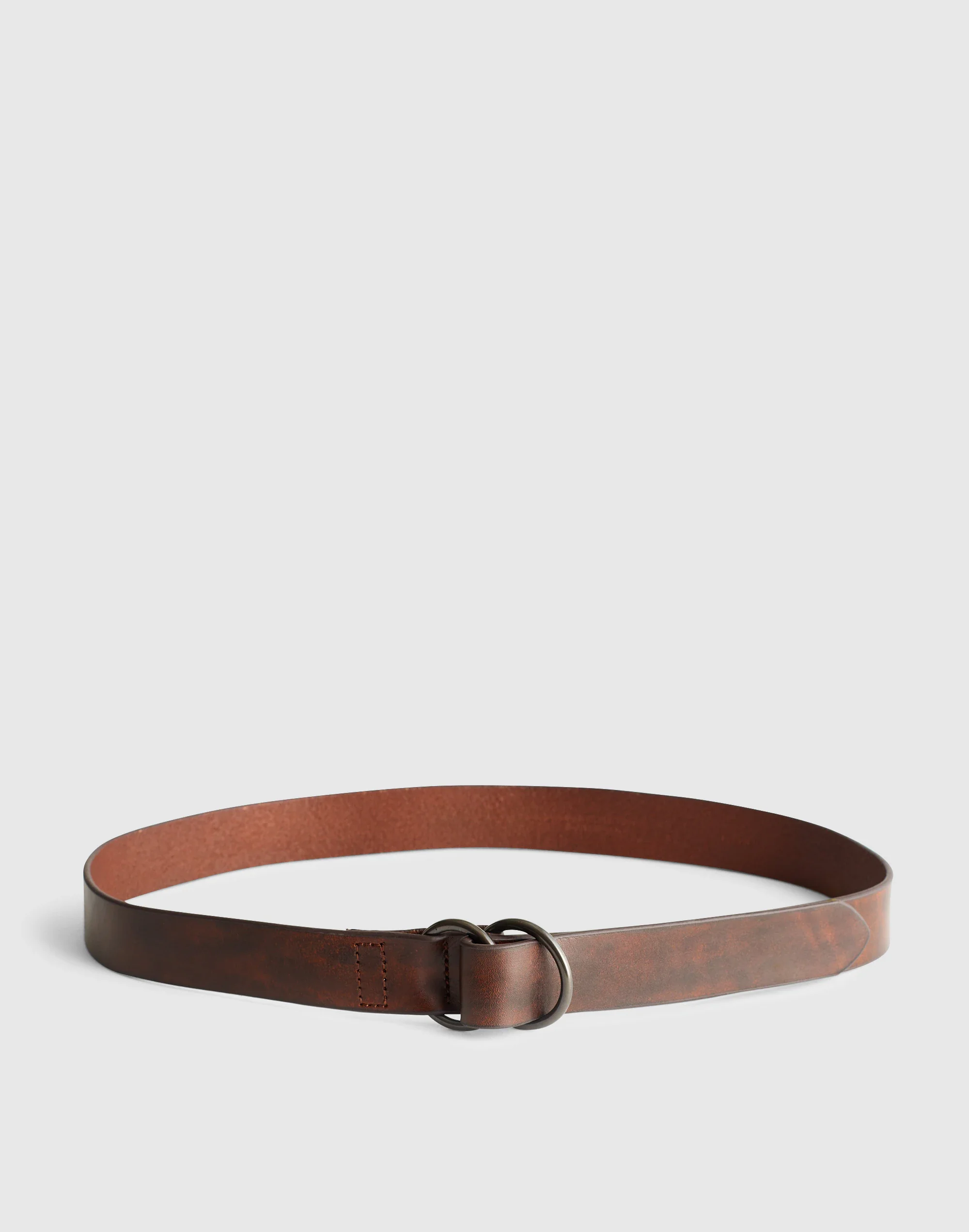 Crafted from vegetable-tanned leather, this belt features a double O-ring design with an antiqued brass finish for vintage character. Hand-finished edges complete this versatile, modern design. - Meant to be worn at the waist. - Width: 1 1/8". - Leather. - Spot clean. - Imported. - Item NZ478
