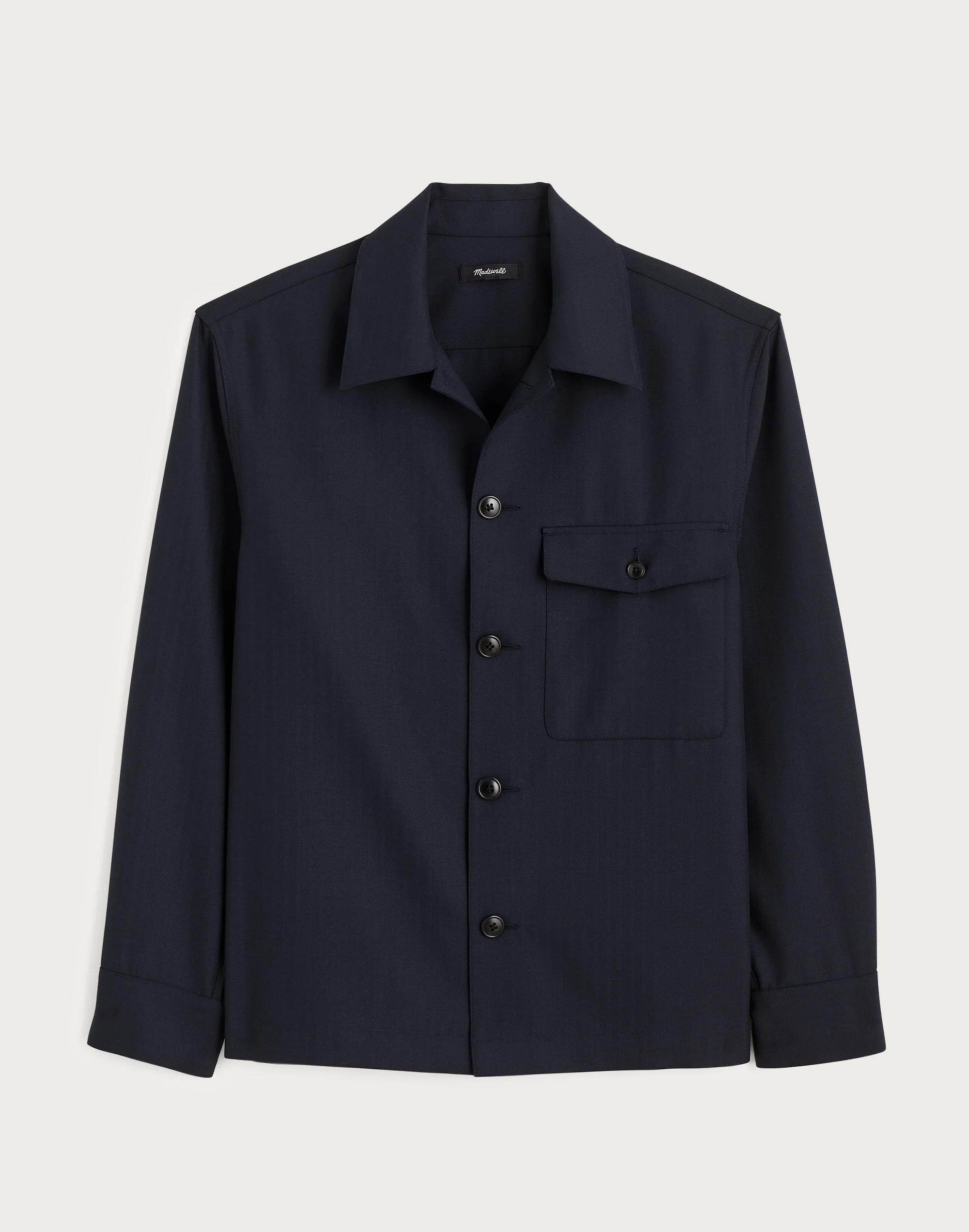 Woven with a subtle herringbone pattern, this dressed-up take on an overshirt features a chest pocket, corozo buttons and side entry pockets for added utility. Pair it with our matching Double-Pleated Shorts for a put-together look. - Standard fit. - Body length: 28". - 60% wool/40% recycled polyester. - Do Well: this style contains wool from certified farms that take a progressive approach to managing their land and caring for their sheep. - Dry clean. - Imported. - Select stores. - Item NZ674