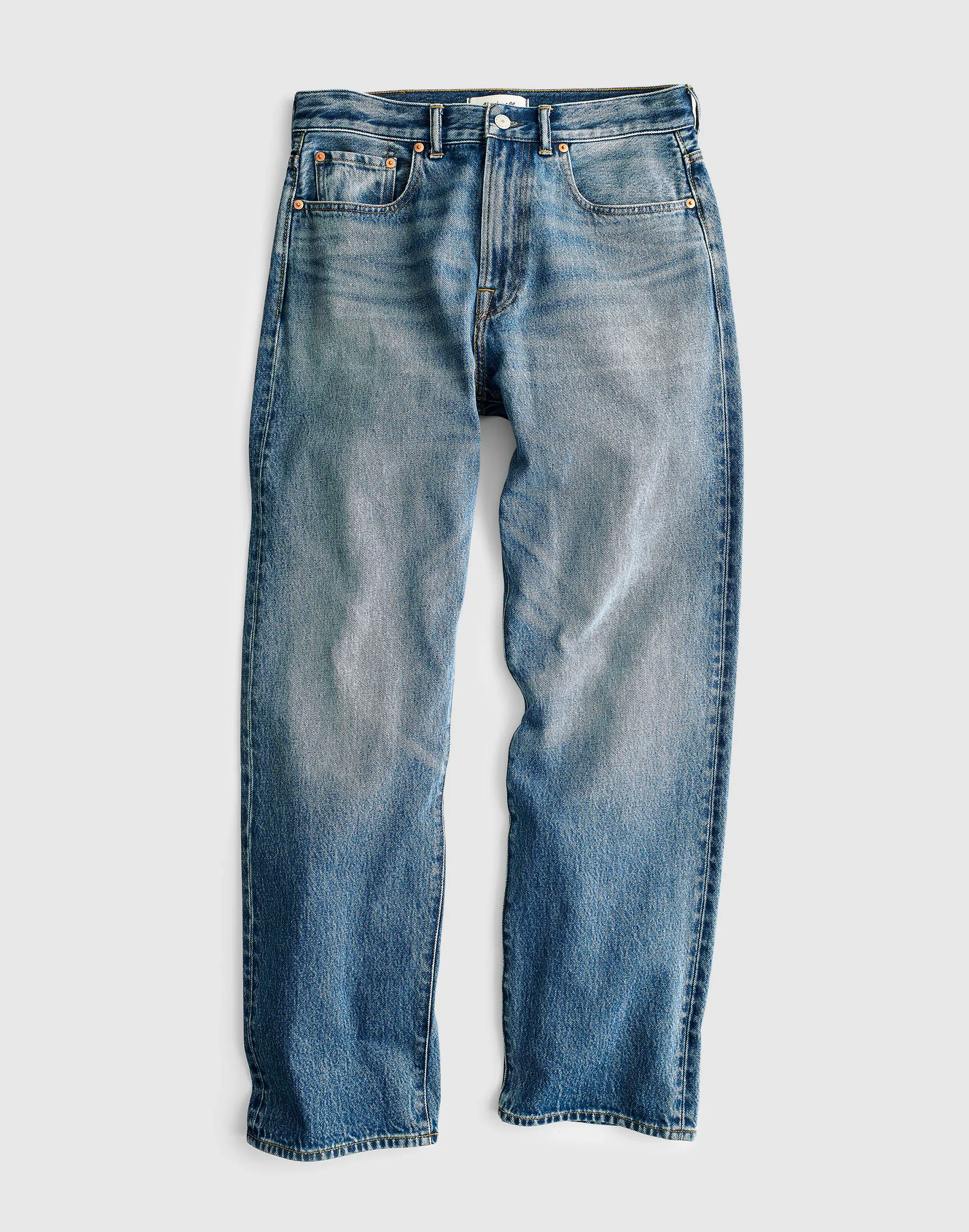 The cut: slightly roomy through the hip and thigh, these jeans feature a classic straight leg. The fabric: 100% cotton rigid denim with zero stretch. - Loose fit. - Rise: 12 5/8"; leg opening: 17 1/2". - 100% cotton. - Do Well: for each item made at the Fair Trade Certified™ factory, we contribute to a Community Development Fund managed by the workers. - 12.75 oz. - Zip fly. - Machine wash. - Imported. - Item NY889