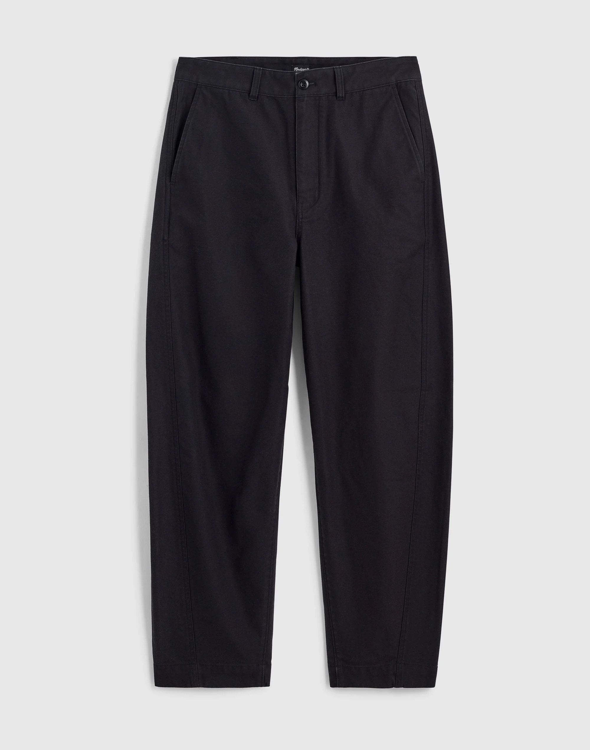 Coming in a heavyweight cotton twill, these pants are relaxed through the hip and thigh. Structured yet laid-back, they feature a tapered leg with a subtly curved outseam. - Regular fit. - Rise: 15 1/4"; leg opening: 16 3/4". - 100% cotton. - Zip fly. - Machine wash. - Imported. - Select stores. - Item NX965