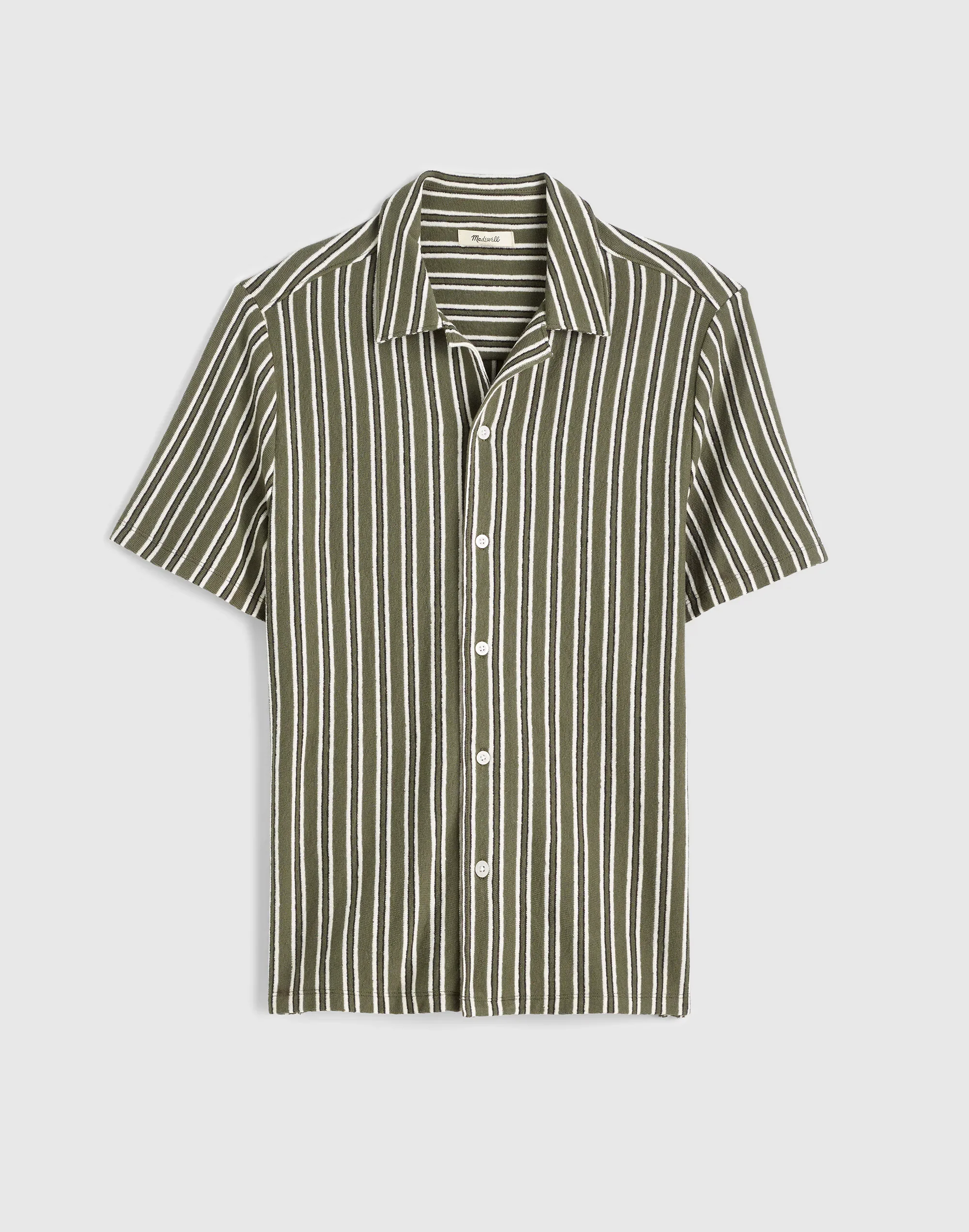 Made from soft cotton terry, this camp shirt features a loop at the top of the camp-style collar for added styling possibilities. - Regular fit. - Body length: 28 1/4". - 100% cotton. - Machine wash. - Imported. - Item NZ248