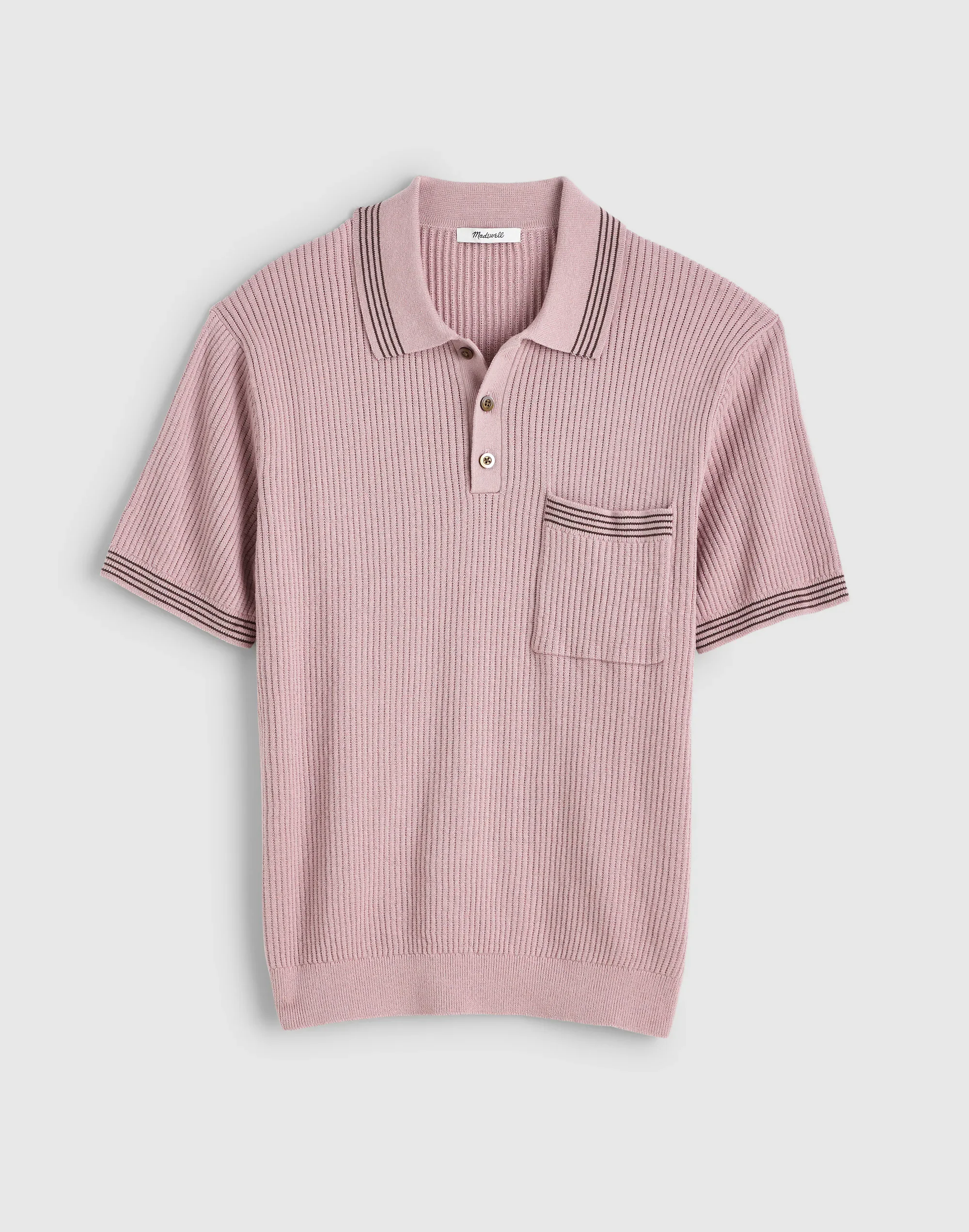 This ribbed sweater polo is crafted from 100% cotton for an easy piece that layers effortlessly. Designed with a three-button placket and vintage-inspired tipping, it's the kind of timeless piece you'll reach for again and again. - Regular fit. - Body length: 26". - 100% cotton. - Machine wash. - Imported. - Select stores. - Item NZ234