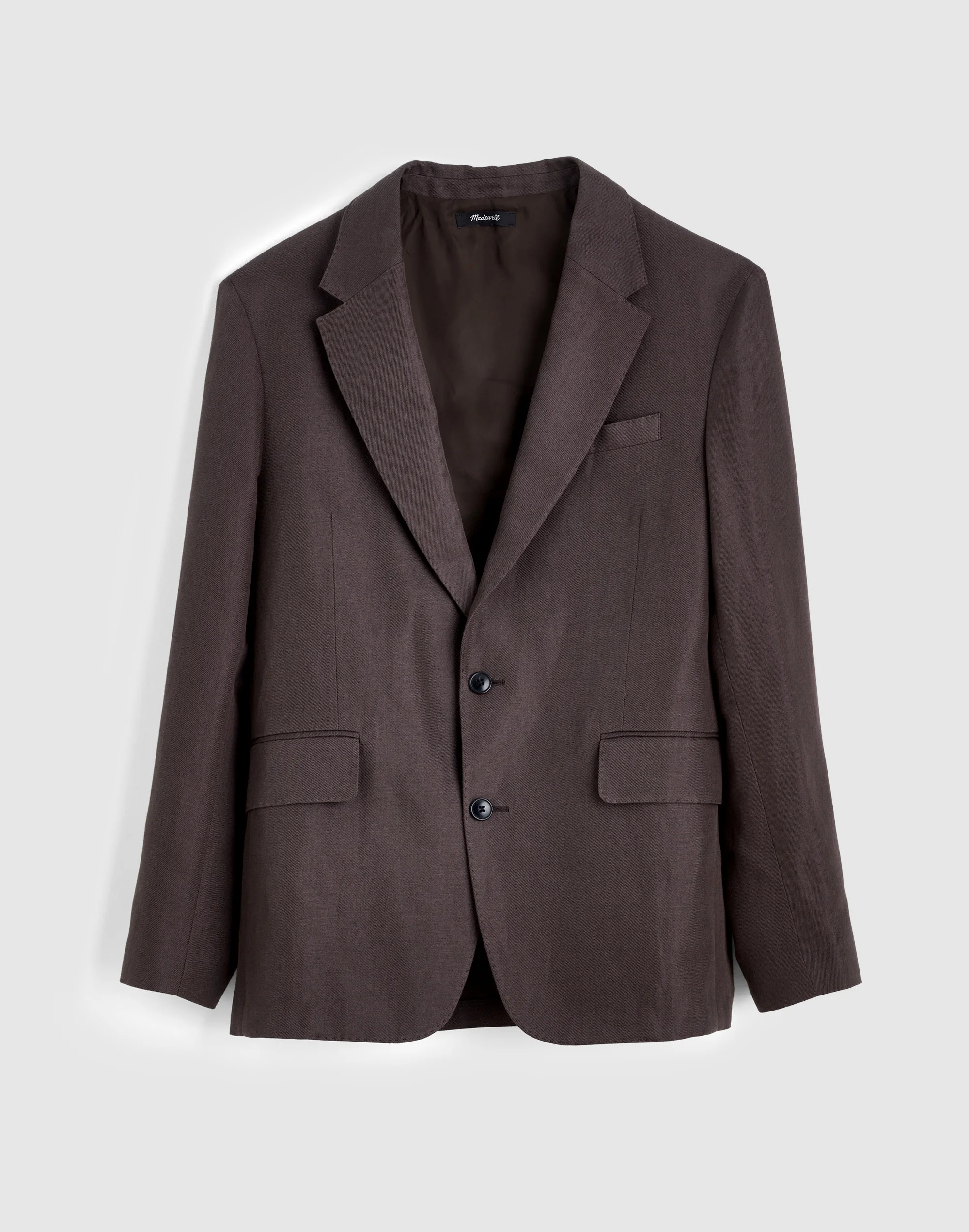 A casual approach to tailoring, this linen-cotton blend two-button blazer features front flap pockets, a revamped interior lining and an interior welt pocket. Pair it with our matching Double-Pleated Trousers for a put-together look for your next event. - Regular fit - Body length: 30 3/4". - 58% linen/42% cotton. - Machine wash. - Imported. - Select stores. - Item NZ149