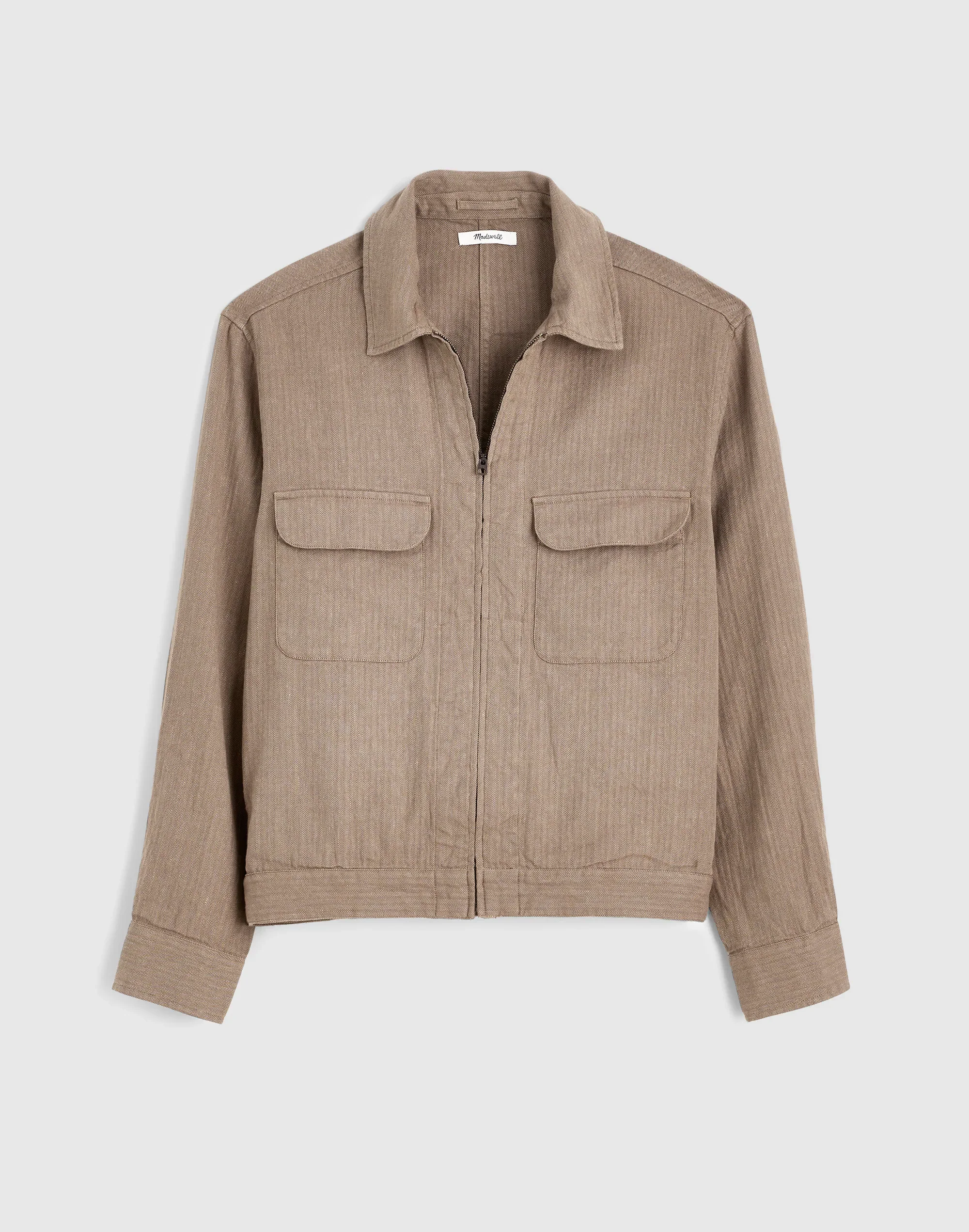 Made from a cotton-linen blend in subtle herringbone, this zip-front jacket puts a fresh spin on classic workwear. Thoughtful details include front patch pockets, side-seam pockets and a clean silhouette that pairs effortlessly with our matching Double-Pleated Short. - Regular fit. - Body length: 26 1/4". - 53% linen/47% cotton. - Machine wash. - Imported. - Select stores. - Item NZ147