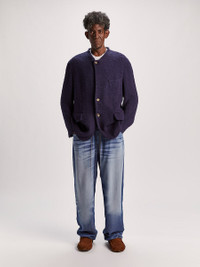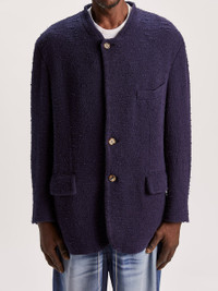 A Regular single Breasted Round Neck Jacket in a Overdyed Boucle Fabric. Composition: 99% CO 1%PL (W)