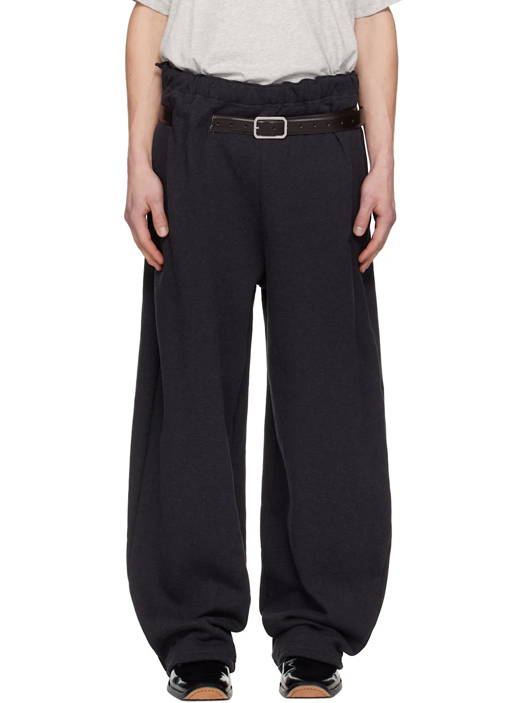 Cotton fleece track pants. · Wide-leg · Drawstring at elasticized waistband · Integrated pin-buckle belt · Two-pocket styling · Vent with raw edge at waistband outseam Supplier color: Off black Body: 100% cotton. Trim: 100% cotton. Made in Italy 252516M191005