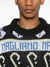 crew-neck jacquard jumper Highlights - Black/multicolour - Cotton blend - Knitted construction - Patterned jacquard - Crew neck - Drop shoulder - Long sleeves - Ribbed cuffs and hem - Straight hem Made in Italy Composition Cotton 50%, Acrylic 50% SIZE & FIT Model measurements Height 6 ft 2 in(1.87 m) Bust/Chest 36.22 in(92 cm) Hips 37 in(94 cm) Waist 27.95 in(71 cm) FittingInformation Designed for an oversized fit, offering additional room throughout Constructed with additional length on the sleeve Made with a midweight knit, this piece offers some stretch This piece fits true to size – if you would prefer a closer fit, take one size down