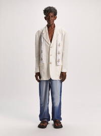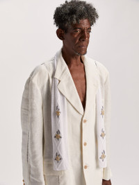 Knitted Scarf With Hand Embroidered Flowers. Item Composition: 100% Cotton Made in Italy Model is 186cm and wears size M