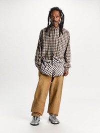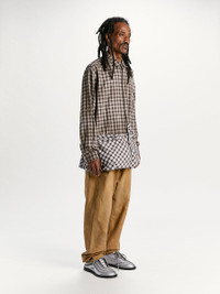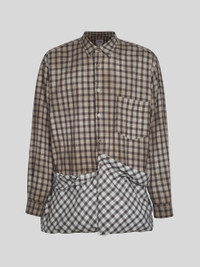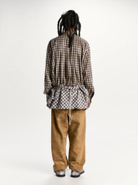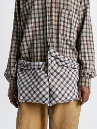 Overdyed Cotton Flannel Check Shirt. At The Bottom An Extension Of Fabric Creates An Additional Pocket System With Drawstring Waistband. Item Composition: 100% Cotton Made in Italy Model is 188cm and wears size M