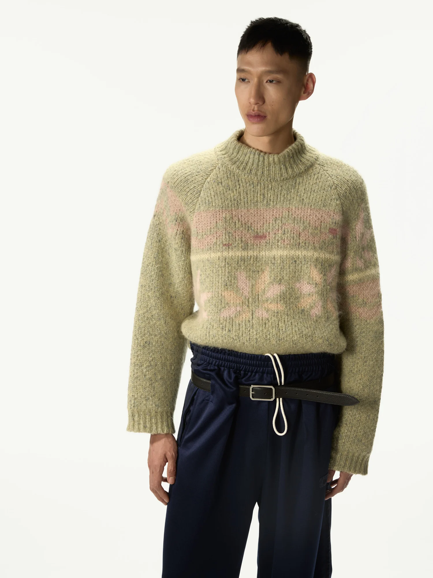 Turtleneck Mohair Sweater Featuring Jacquard Designs. Item Composition: 48% Alpaca, 22% Polyamide, 20% Wool, 10% Cotton Made in Italy