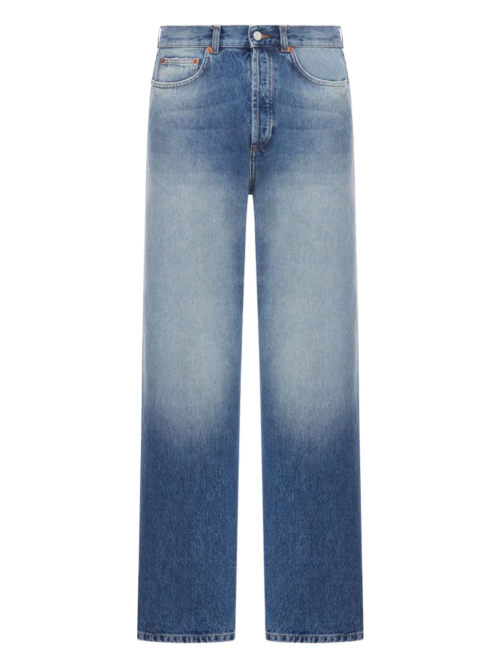 straight-leg jeans Highlights - Blue - Front button and zip fastening - Belt loops - Classic five pockets - Rear logo patch Made in Italy Composition Cotton 100%