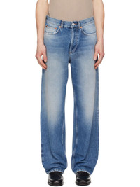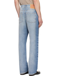 Non-stretch denim jeans. · Fading, whiskering, and subtle distressing throughout · Belt loops · Five-pocket styling · Button fly · Logo patch at back waistband · Contrast stitching in tan Supplier color: Sky ice Body: 100% cotton. Trim: 65% polyester, 35% cotton. Made in Italy 252516M186000