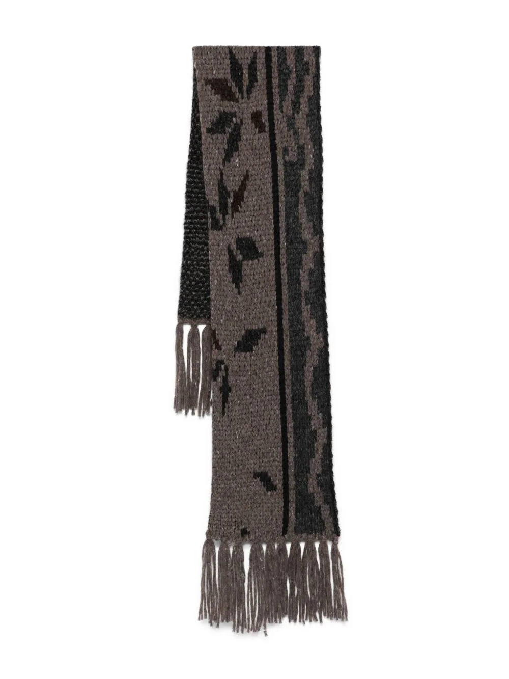 floral-pattern fringed scarf Highlights - Dark brown - Floral pattern - Fringed edges Made in Italy Composition Alpaca 30%, Polyamide 22%, Wool 20%, Mohair 18%, Cotton 10% SIZE & FIT Measurement LENGTH 74.8 in(190 cm) WIDTH 9.05 in(23 cm) Washing instructions Dry Clean Only