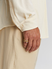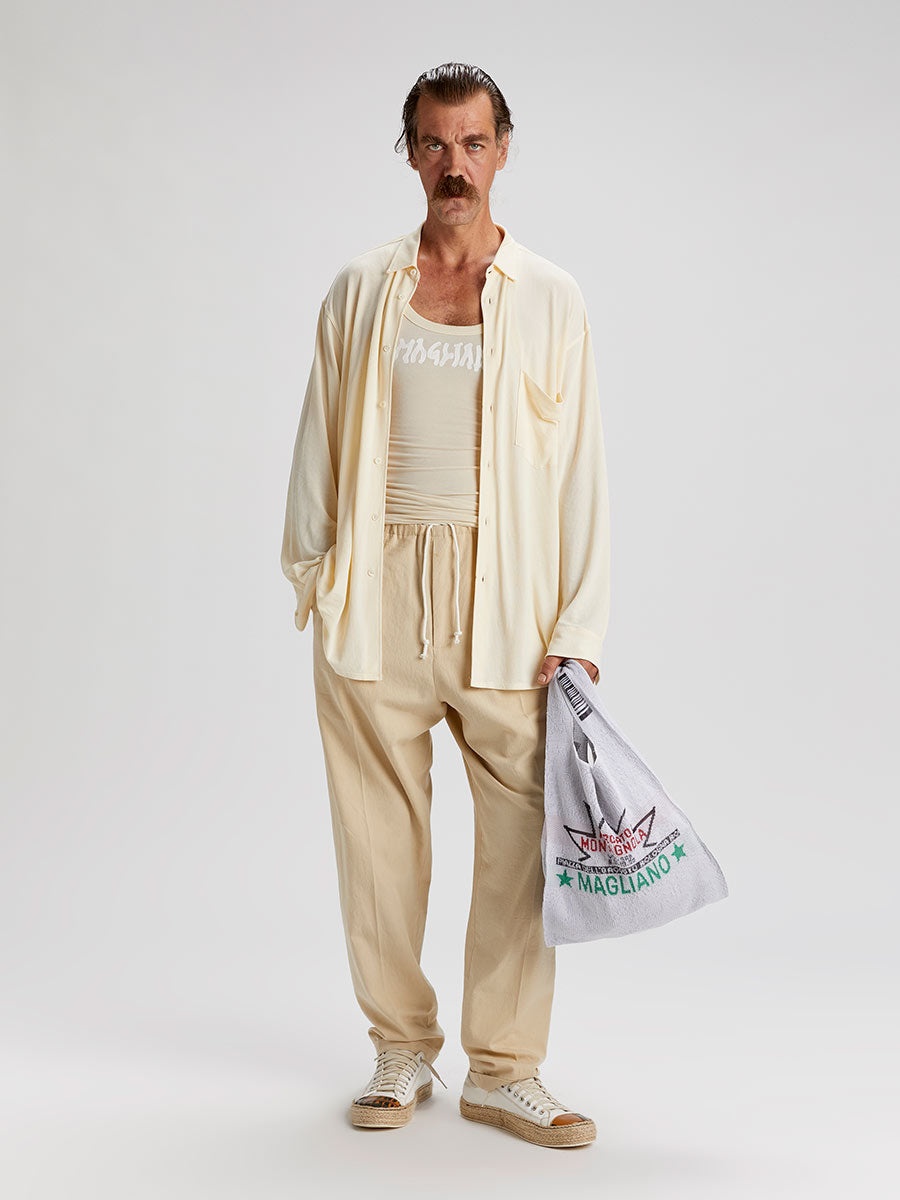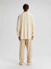 Ribbed Jersey Shirt in Natural Off Color. Made out of Paper. Signature Braid Motive on the Back of the Collar Item Composition: 77% Polyimide Fiber, 23% Polyester Made in Italy Model is 186cm and wears size M
