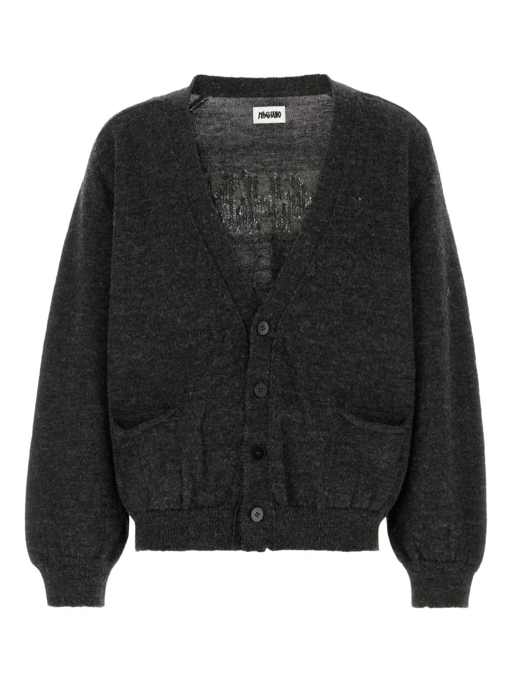 logo-embellishment wool cardigan Highlights - Grey - Wool - V-neck - Button fastening - Patch pockets - Logo embellishment - Ribbed hem Made in Italy Composition Wool 100% Washing instructions Read Manufacturer Guidelines