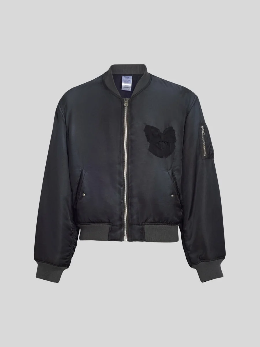 Bomber Jacket In Overdyed Nylon Embellished With A Silk Satin Bow. Item Composition: 100% Nylon Made in Italy