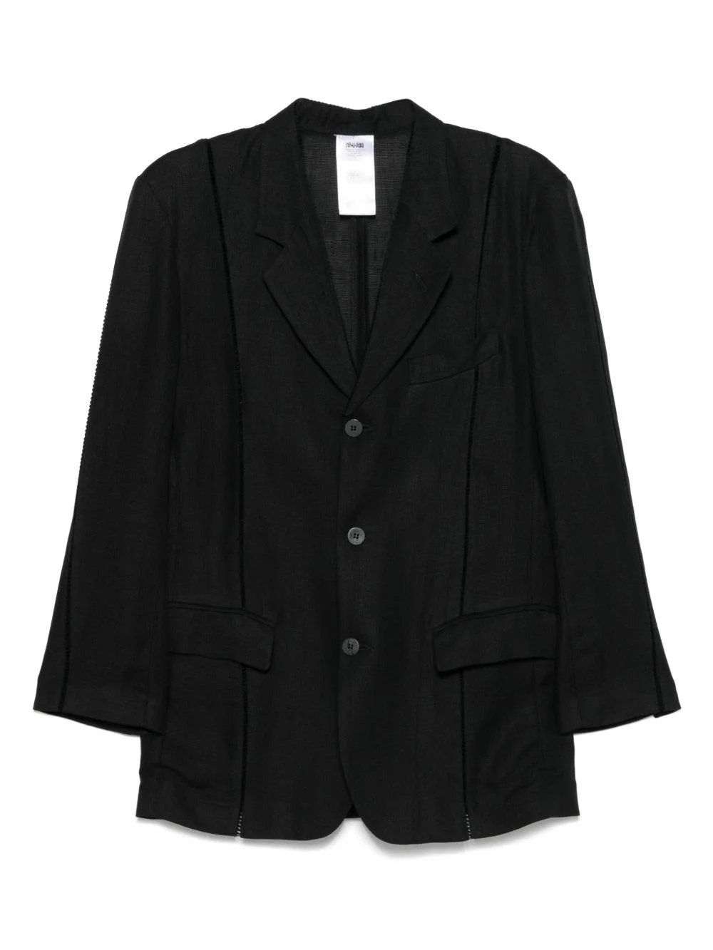 single-breasted blazer Highlights - Black - Front button fastening - Chest welt pocket - Two front flap pockets - Buttoned cuffs Made in Italy Composition Lining: Cupro 100% Outer: Linen/Flax 61%, Cotton 39%