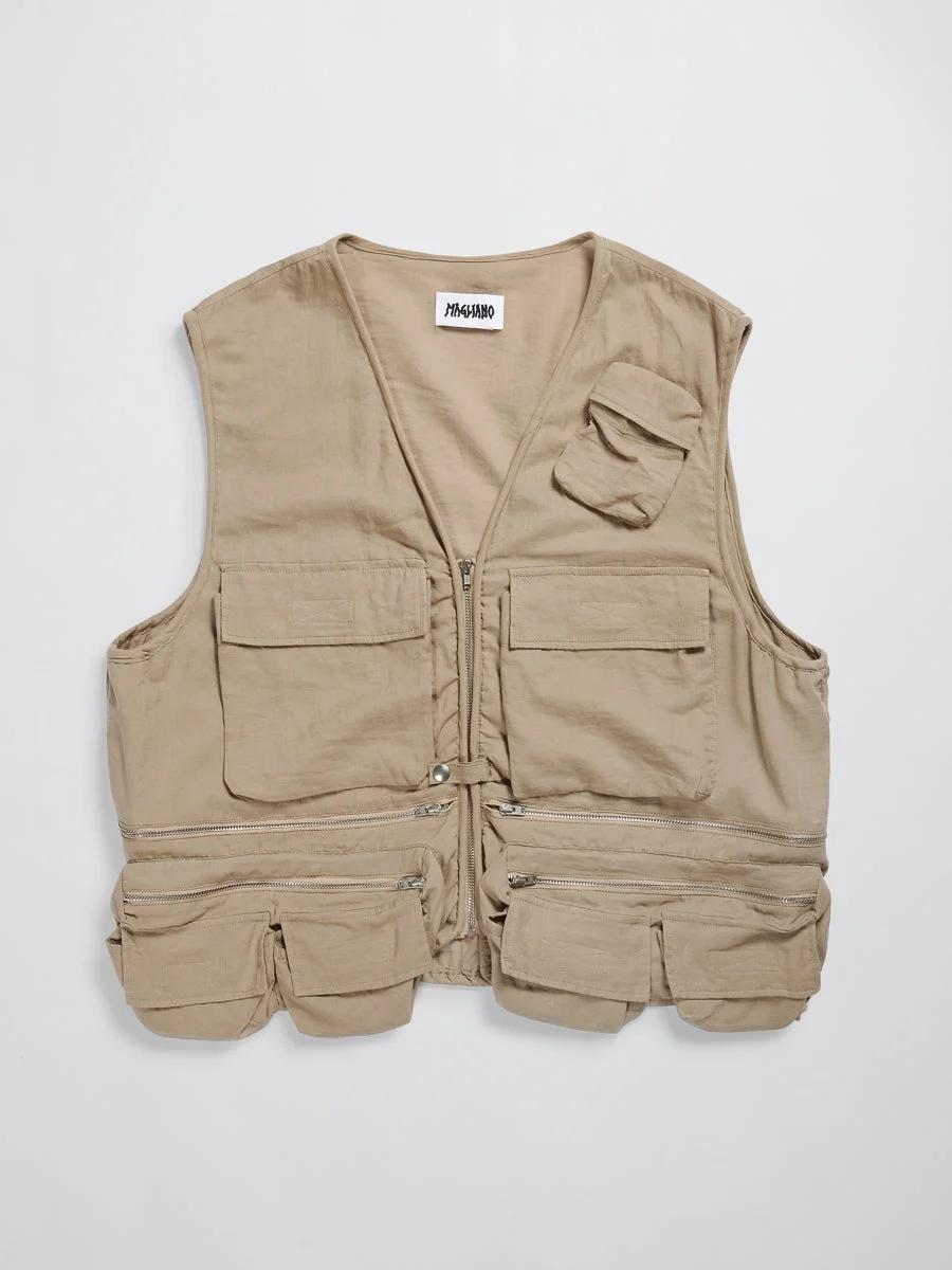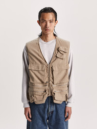 Utility Vest In Washed Cotton Featuring Multiple Flap Pockets, Zippered Compartments, And A Front Zip Closure. Item Composition: 100% Cotton Made in Italy Model is 188cm and wears size M