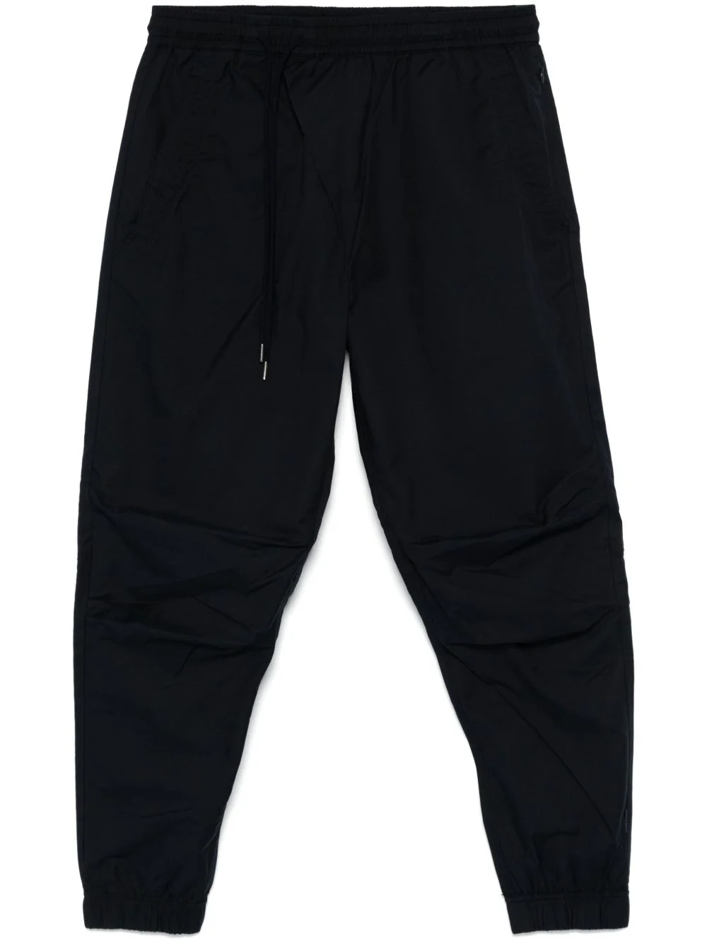 4050 Asym track pants Highlights - Navy blue - Organic cotton blend - Textured finish - Drawstring fastening - Elasticated waistband - Two side slash pockets - Rear flap pocket - Elasticated ankles - Tapered leg Imported Composition Organic Cotton 66%, Recycled Polyester 34%