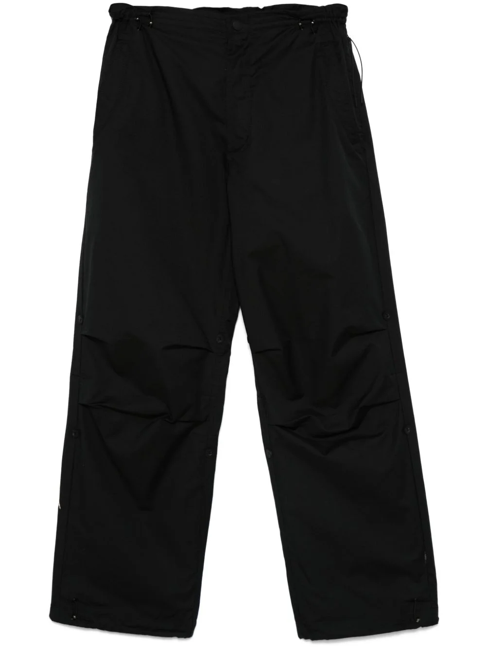 Basquiat Nu-Nile trousers Highlights - Black - Organic cotton-recycled polyester blend - Poplin texture - Concealed fly and button fastening - Elasticated drawstring waistband - Two side zip-fastening pockets - Two diagonal pockets to the sides - Decorative button detailing - Dart detailing - Two rear flap pockets - Embroidered logo to the rear - Embroidered motif - Straight leg Imported Composition Organic Cotton 66%, Recycled Polyester 34%