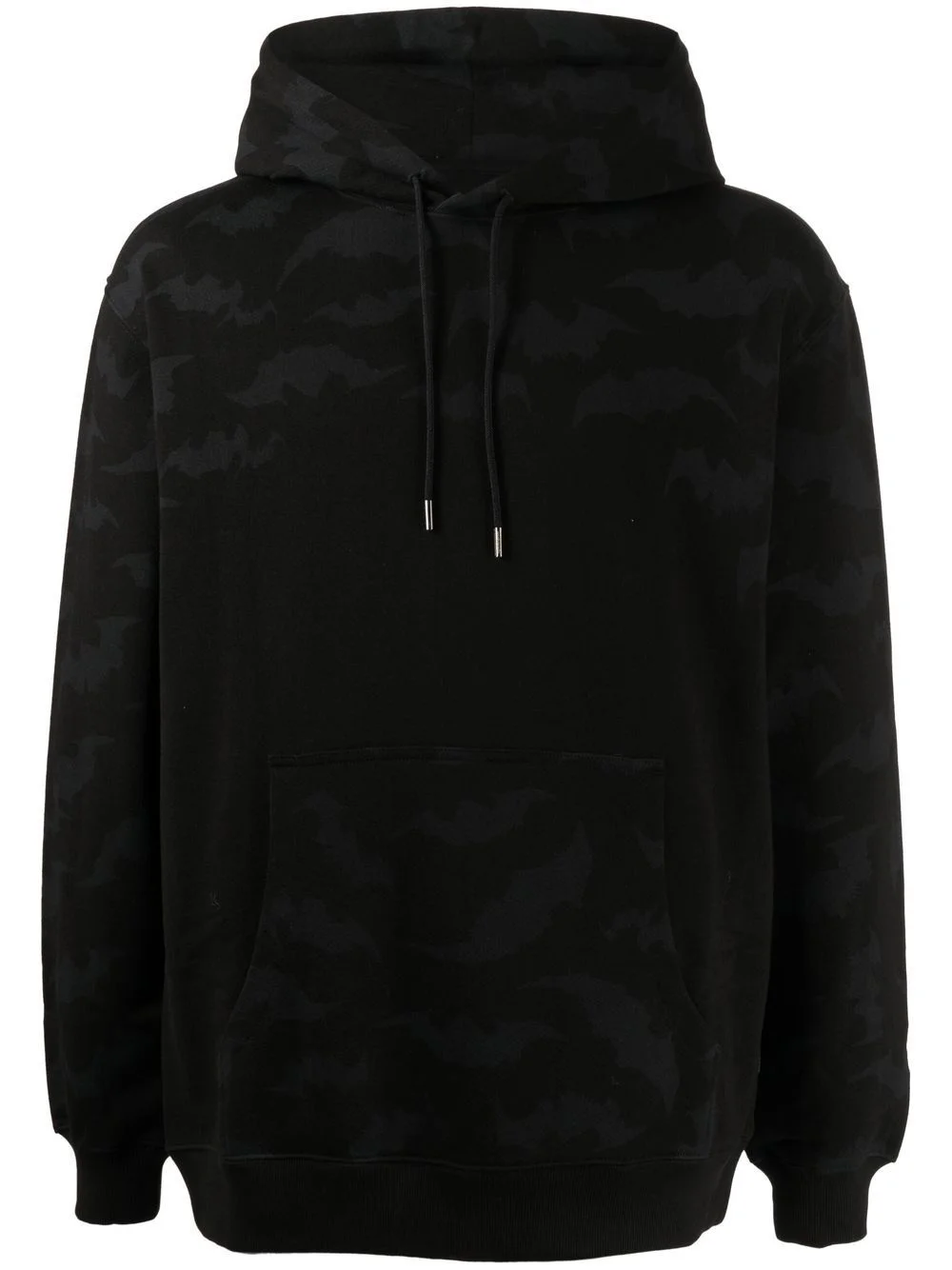 bat-print cotton hoodie black jersey fleece bat print drawstring hood drop shoulder long sleeves fitted-cuff sleeves front pouch pocket straight hem Imported Composition Body: Cotton 100% SIZE & FIT Model measurements Height 6 ft 3 in(1.9 m) Bust/Chest 34.64 in(88 cm) Hips 36.61 in(93 cm) Waist 27.55 in(70 cm) FittingInformation This piece fits true to size. We recommend you get your regular size Cut for a relaxed fit Made with a mid-weight fabric