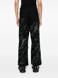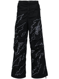 Maha Basquiat trousers Highlights - Black/white/grey - Organic cotton - Poplin texture - All-over graphic embroidered - Elasticated waistband - Concealed fly and button fastening - Two side welt pockets - Side zip-fastening pocket - Rear flap pocket - Drawstring hem Imported Composition Organic Cotton 100% SIZE & FIT Model measurements Height 6 ft 2 in(1.88 m) Bust/Chest 34.25 in(87 cm) Hips 34.64 in(88 cm) Waist 26.77 in(68 cm) FittingInformation Designed with a wide leg, offering a loose and roomy fit The internal drawstring at the hem allows for fitted preferences at the ankle Made from a midweight non-stretch fabric