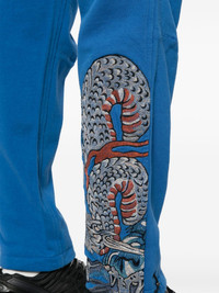 dragon-print cotton trousers Highlights - Blue - Organic cotton - Dragon print - Elasticated drawstring waistband - Two side slit pockets - Straight leg Imported Composition Organic Cotton 100% SIZE & FIT Model measurements Height 6 ft 2 in(1.87 m) Bust/Chest 33.07 in(84 cm) Hips 35.43 in(90 cm) Waist 26.77 in(68 cm) FittingInformation Designed for a relaxed tapered leg, allowing a comfortable loose fit above the knee with a closer fit towards the calves The internal drawstring at the hem allows for fitted preferences at the ankle Made from a midweight non-stretch fabric, this piece offers minimal elasticity when worn This piece fits true to size – take your usual size