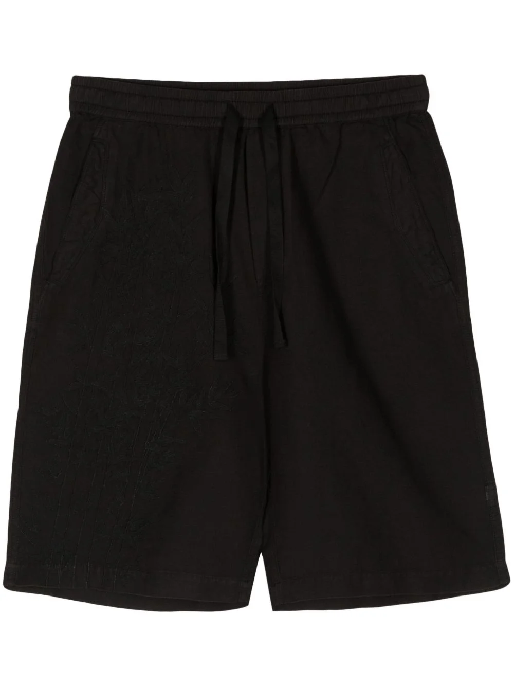 embroidered-motif hemp deck shorts Highlights - Black - Cotton-hemp blend - Embroidered motif - Mid-rise - Drawstring waist - Slip pockets to the sides - Rear button-fastening pocket - Knee-length Imported Composition Hemp 100%, Combed Cotton 100%