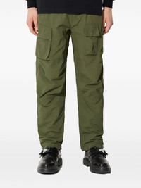 multi-pocket cargo trousers Highlights - Olive green - Multiple cargo pockets - Concealed front zip fly fastening - Elasticated waistband - Front buckle fastening to the waist - Two side slash pockets - Drawstring hem - Full-length - Tapered leg Imported Composition Recycled Polyamide 100% SIZE & FIT FittingInformation Designed for a relaxed tapered leg, allowing a comfortable loose fit above the knee with a closer fit towards the calves The elasticated waist allows for a comfortable fit Made from a lightweight non-stretch fabric Washing instructions Read Manufacturer Guidelines