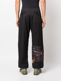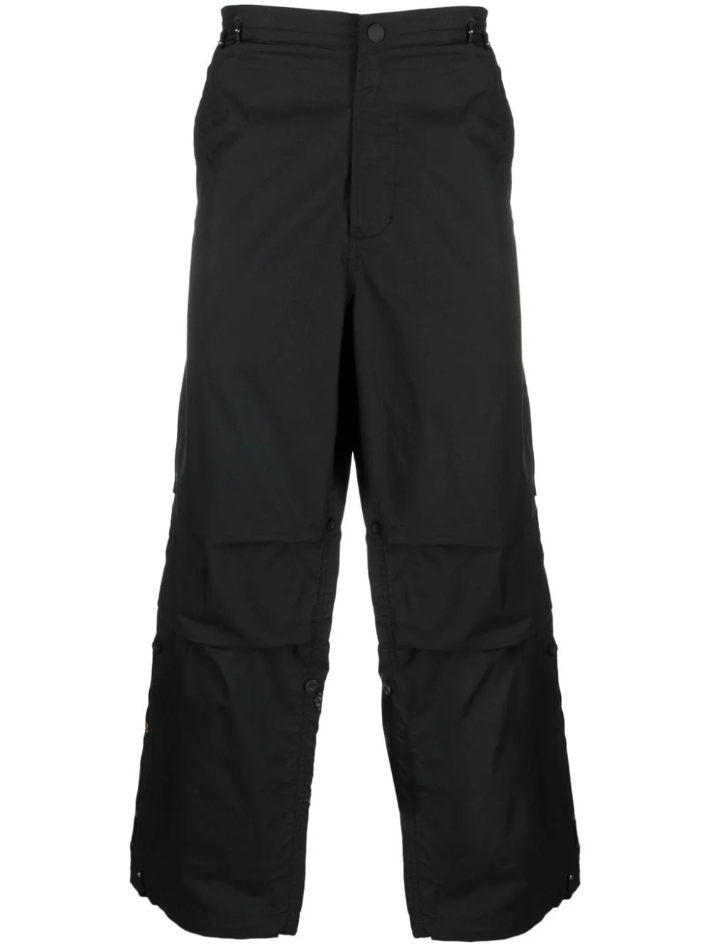 Ninjutsu loose-cut trousers Highlights - Black - Organic cotton blend - Embroidered detailing at the hem - Gathered detailing - Drawstring hem - Mid-rise - Drawstring fastening waist - Front button and zip fastening - Two side inset pockets - Two rear flap pockets Imported Composition Organic Cotton 66%, Recycled Polyester 34% SIZE & FIT Model measurements Height 6 ft 2 in(1.89 m) Bust/Chest 37.79 in(96 cm) Hips 37 in(94 cm) Waist 29.92 in(76 cm) FittingInformation Designed for a relaxed straight leg, allowing a comfortable and loose fit over the leg The internal drawstring at the hem allows for fitted preferences at the ankle Made from a midweight non-stretch fabric This piece fits true to size – take your usual size