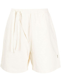 off centre-drawstring bermuda shorts Highlights - Ecru - Cotton-hemp blend - Off-centre front fastening - Elasticated drawstring waistband - Two side inset pockets - Rear flap pocket Imported Composition Cotton 50%, Hemp 50% SIZE & FIT Model measurements Height 6 ft 2 in(1.87 m) Bust/Chest 34.25 in(87 cm) Hips 36.22 in(92 cm) Waist 29.52 in(75 cm) FittingInformation Designed for relaxed fit, offering a comfortable loose fit over the leg The elasticated waist allows for a comfortable fit Made from a midweight non-stretch fabric This piece fits true to size – take your usual size Washing instructions Machine Wash