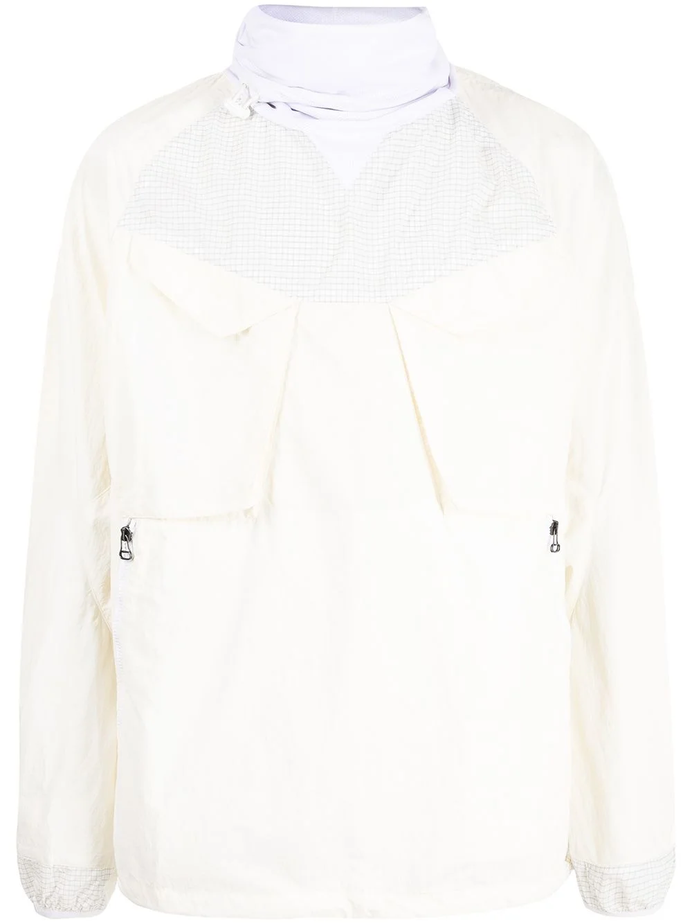 pullover funnel-neck jacket Highlights - White - Recycled nylon - Panelled design - Funnel neck - Long sleeves - Elasticated cuffs - Two chest patch pockets Imported Composition Recycled Nylon 100% SIZE & FIT Model measurements Height 6 ft 0 in(1.83 m) Bust/Chest 37.79 in(96 cm) Hips 37 in(94 cm) Waist 30.31 in(77 cm) FittingInformation This piece fits true to size. We recommend you get your regular size Cut for a loose fit Made with a mid-weight non-stretch fabric Washing instructions Dry Clean Only