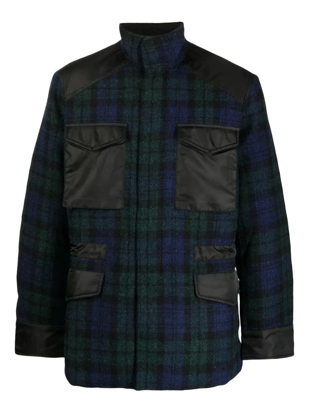 tartan-check bomber jacket Highlights - Green - Concealed front fastening - Multiple cargo pockets Imported Composition Wool 100%