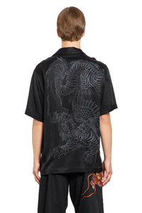 DESCRIPTION - Black - Japanese cupro twill - Satin - Notched collar - Button closure - Embroidered chest logo - Chest pocket - Dropped shoulders - Short sleeves - Back tiger dragon embroidery - Boxy fit DETAILS - Made in: India - Composition: 54% Rayon 46% Cupro - Model code: 6098 BLACK - Item ID: 9458500698454 SIZE & FIT Model wears size M Model Height 187 cm Chest 87 cm Waist 69 cm Hips 91 cm