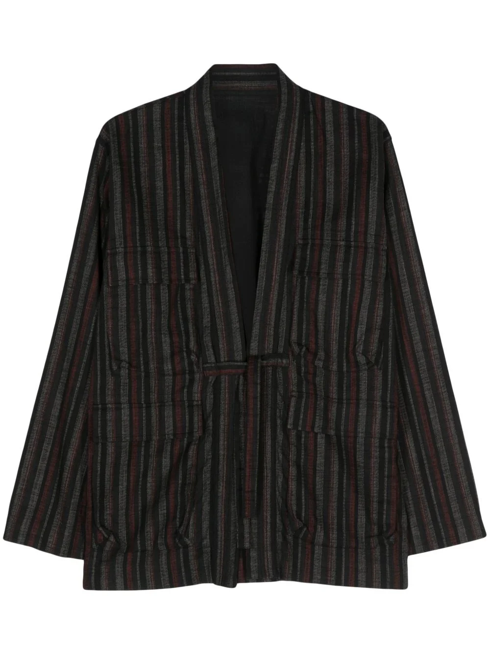Wagara striped jacket Highlights - Black/multicolour - Organic cotton - Vertical stripe pattern - Collarless - Long sleeves - Four front patch pockets - Straight hem - Front tie fastening Imported Composition Organic Cotton 100%