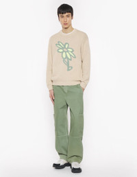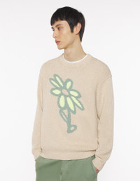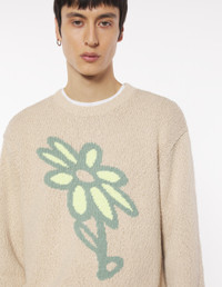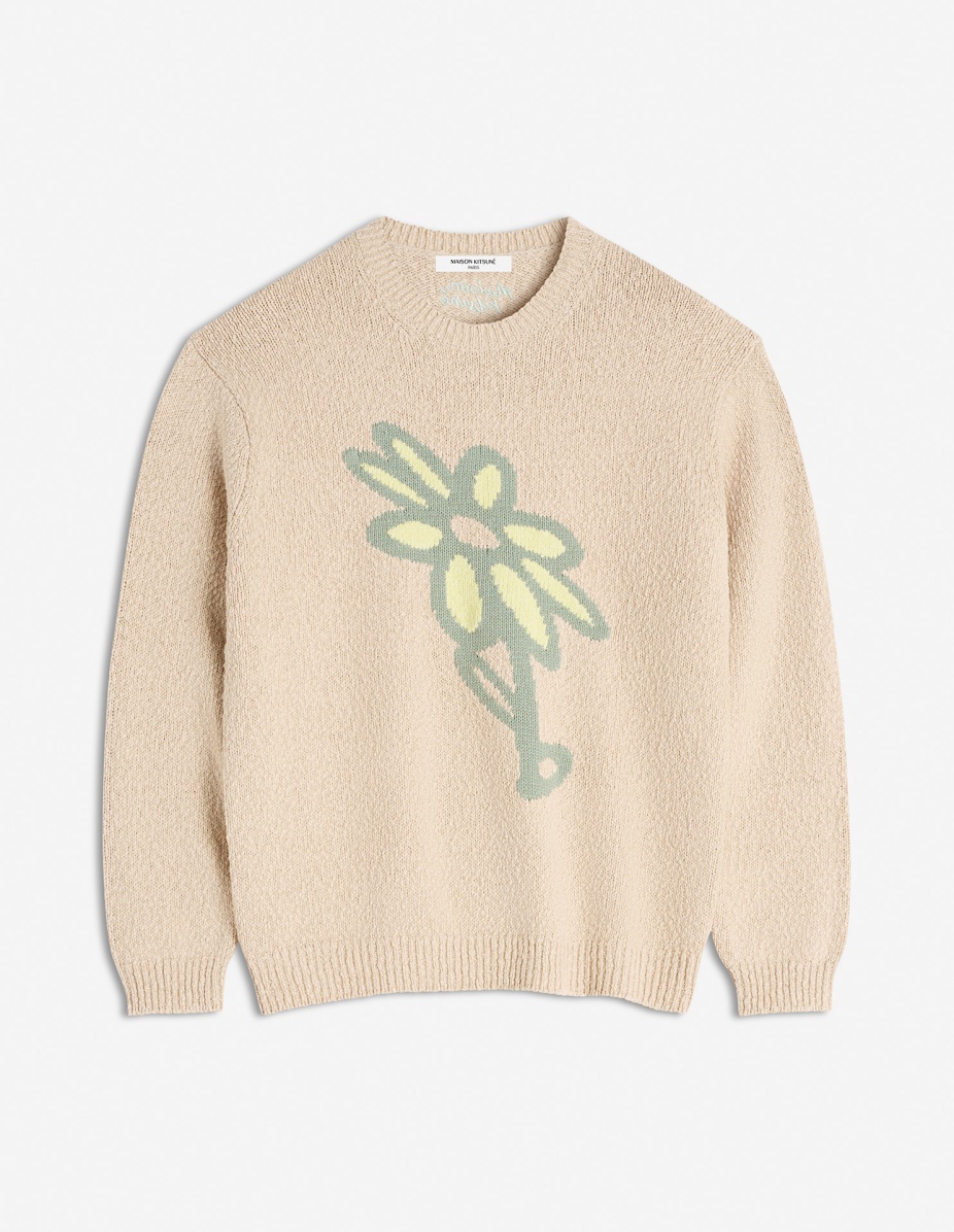 DETAILS Textured cotton jumper with long sleeves. Comfort cut with Daisy motif in intarsia and Maison Kitsune Handwriting signature embroidered. - Textured cotton jumper - Comfort cut - Crewneck - Daisy motif in intarsia on the front - Long sleeves - Maison Kitsune Handwriting signature embroidered at the back - Ribbing at the neckline, cuffs, and waist OM00811KT1138-0176 SIZE & CUT Sizing: MEN The male model is 11 and is wearing size M MATERIAL 98% COTTON, 2% POLYAMIDE TRACEABILITY Made in China
